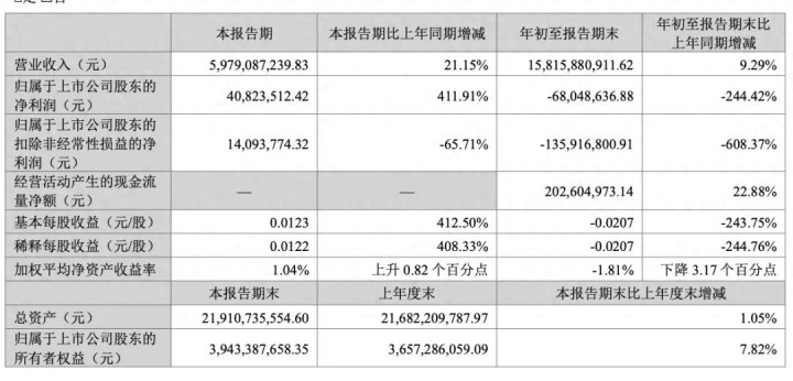 欧菲光(002456)发布2025年三季度报,今年前三季度,公司实现营收158.16亿元,同比增长9.29%;归属于上市公司股东的净利润-6804.86万元,由盈转亏。其中,第三季度营收为59.79亿元,同比增长21.15%;归属于上市公司股东的净利润4082.35万元,同比增长411.91%。